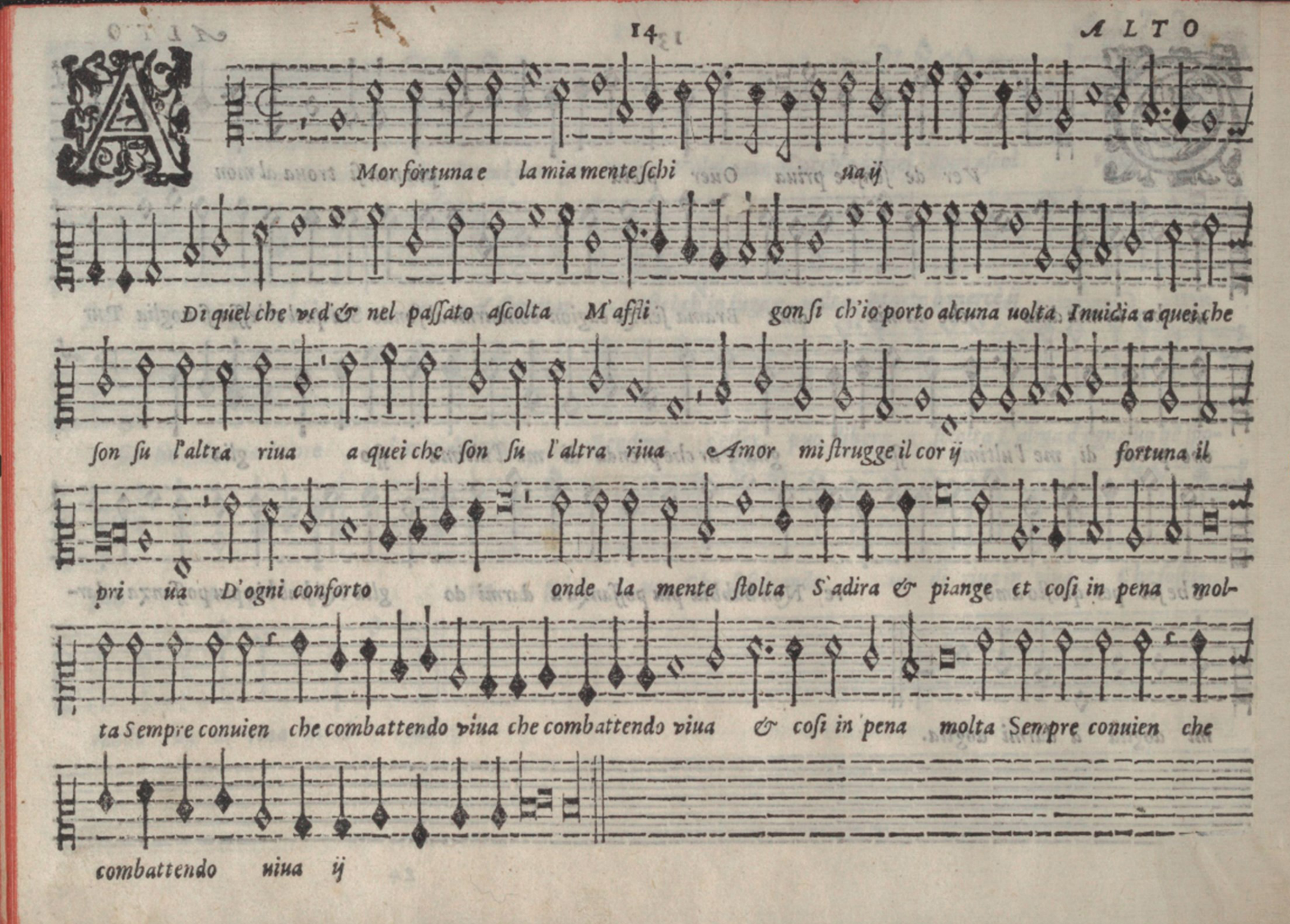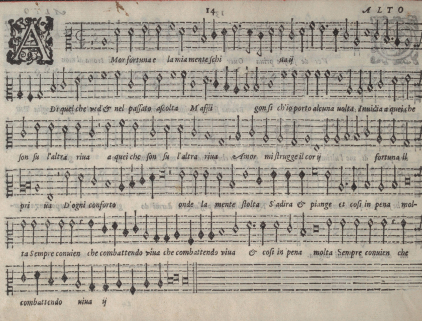Titelblatt, aus: Giovanni Pierluigi da Palestrina, Il primo libro di Madrigali a quatro voci, Venedig: Ricciardo Amadino, 1587, Cantus-Stimmbuch